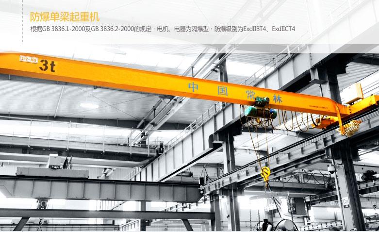 QB型防爆橋式起重機(jī)所有的電動機(jī)、電器防爆使用性能滿足GB3836.2-2000《爆炸性氣體環(huán)境用防爆電氣設(shè)備第二部分:隔爆型“d”》、整個設(shè)備使用性能滿足JB